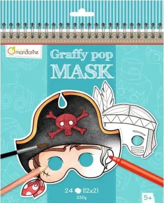 Malebog indeholdende 24 færdigskårne masker, der kan farvelægges og bruges til alle udklædningsfester!