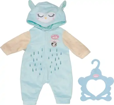 Baby Annabell elsker gåture i skoven og ture til dyreparken. Når der ikke er mulighed for at besøge dyrevennerne, tager hun ugledragten på. Hatten på den nuttede heldragt er dekoreret med et sødt ugleansigt og udstående ører. Et sødt vedhæng dingler over fjertrykket i brysthøjde. Ærmerne på de blå overalls er kontrasterende i farven. Det gule marmorerede print minder om fjerdragten på en ugles vinger.