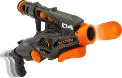 Blackfire er en serie af skumblastere med skumkugler i stedet for almindelige pile som i mange andre blastertyper. Dragonfire Ball Blaster er en af de fede blastere i serien, og den gør dig fuldt udrustet til at klare en hver anden spiller!