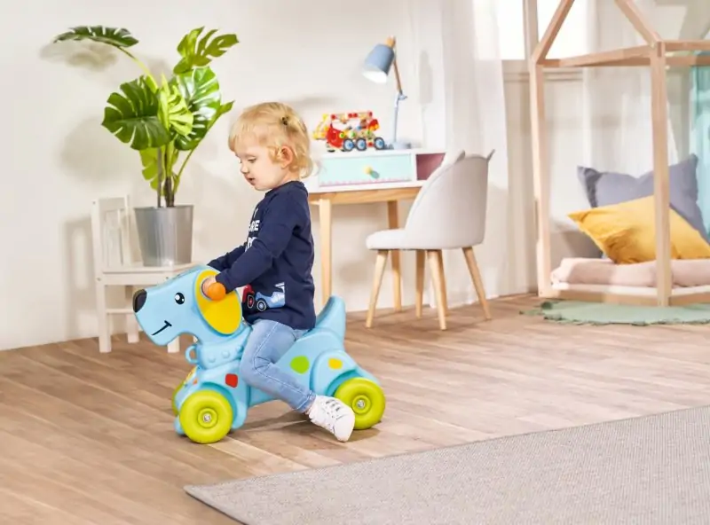 Denne gåbil til børn er en sød gåbil som forstiller en hund – perfekt til de mindre børn. Denne bil opfordrer børn til at øve sin grovmotorik som fx evnen til at gå, og forståelsen for balance. Barnet kan suse afsted i hele hjemmet, og hurtigt får barnet en sans for at kunne køre hurtigere og hurtigere. En gåbil er et ideelt springbræt til barnets motoriske udvikling. Denne gåbil vil blive elsket af ethvert barn, det søde motiv er perfekt til børn. Bilen er lavet af hård plastik og kan holde til 50kg