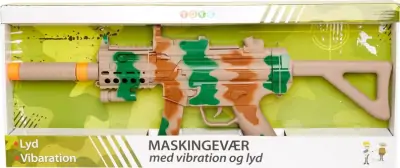 Gør legen mere realistisk med dette fantastiske maskingevær der både har lyd og vibration. Derudover har det et fedt look, da det er udført i camouflagefarver, så du lettere kan skjule dig for fjenden. Læg dig i baghold og spring frem, når han mindst venter det! Hvis dine snigeevner er gode nok, vil han ikke have en chance.