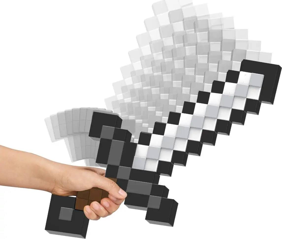 Sværdet er designet med Minecrafts ikoniske pixelerede design og passer perfekt i et barns hånd. Vælg mellem et jernsværd eller en fortryllet hakke for at bekæmpe dine fjender, ligesom i videospillet – eller saml på dem begge!