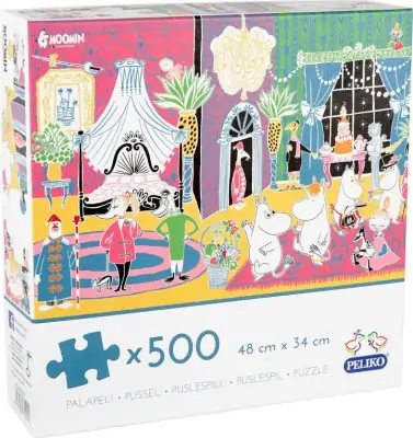 Hyg dig med venner eller familie med dette farverige puslespil med 500 brikker med mummitrold tema.
