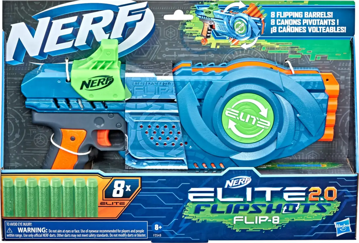 Med sit seje design er Flipshots Flip-8 blasteren perfekt til enhver afgørende kamp. Tryk på aftrækkeren og oplev enorm præcision og nøjagtighed med de medfølgende skumpatroner!