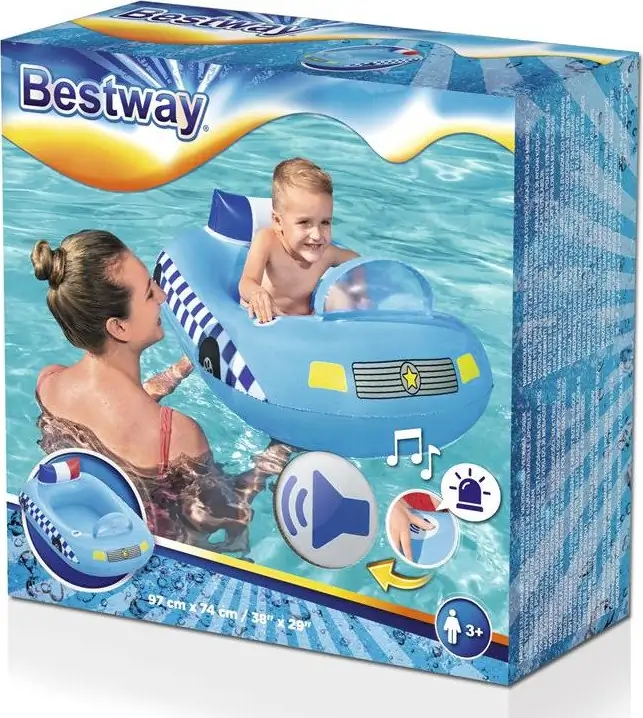 Den blå båd fra Bestway er formet som en politibil, og den spiller realistiske sirenelyde ved blot et tryk på en knap. Batteriet er holdbart og derfor vil dit barn kunne lege politi sommer efter sommer.