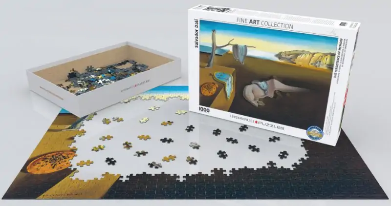 Den spøjse surrealist Salvador Dalis mest kendte maleri med de smeltede ure – Erindringens Bestandighed – kan nu blive dit i puslespilsform. Puslespillet har 1000 brikker, så det skal nok blive en udfordring. Er du garvet nok til at klare opgaven?