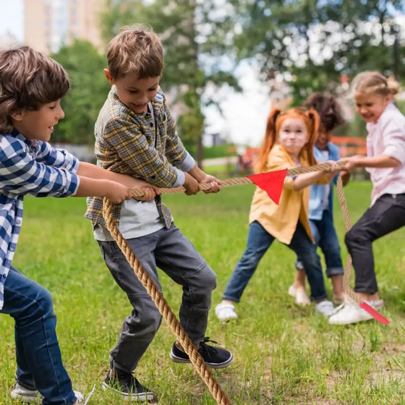 Den gode underholdning er altid sikret med en spændende tovtrækningskonkurrence! Del dine venner eller familie i to hold og lad dem trække i hver sin ende af rebet. Det røde bånd markerer rebets midte. Hvem mon har den bedste teknik og de fleste kræfter? God dyst!