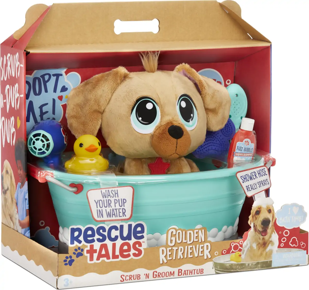 Ha’ en hyggelig badesession med den søde Golden Retriever i dette Scrub ‘n Groom badekar legesæt!
