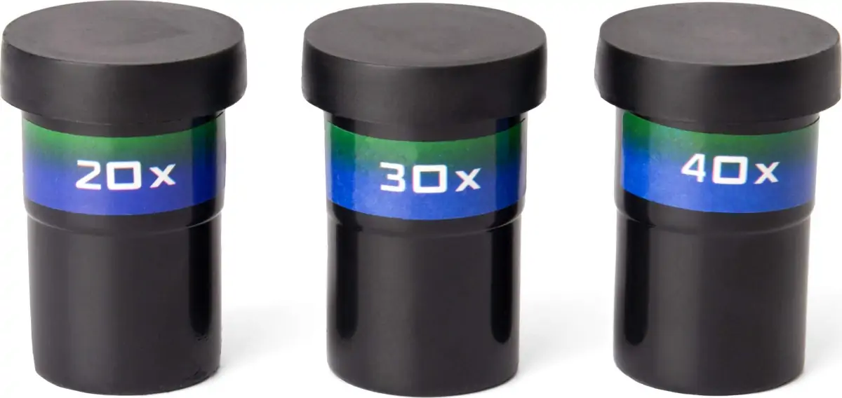 Dette teleskop har justerbart fokus og inkluderer et 20x, 30x og 40x forstørrelsesglas.