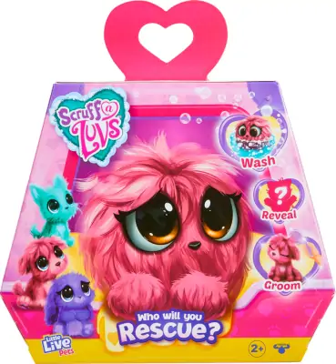 Hvem kommer du til at redde? Kaninen, killingen eller hvalpen? Start med at give den et bad, vask farven ud og opdag hvem du reddede! Tør og børst din nye plysven!