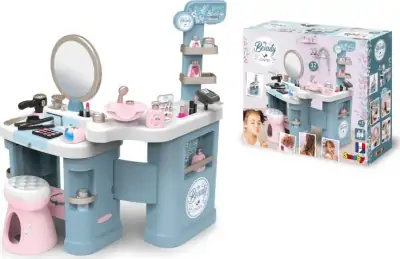 Med skønhedssalonen kan du lade din drøm gå i opfyldelse og åbne din helt egen salon. Sættet har et sminkeområde med et sødt spejl og skammel, hvor du kan style dit hår med føntørren, glattejernet og børsten. Derudover er der også plads til at du kan pynte kundernes negle og lægge flot makeup på dem, så de kommer til at ligne en superstar.
