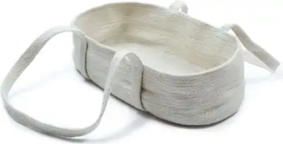 Dukkeliften fra Smallstuff er lavet af genanvendt garn i farven cremehvid, og den har to store håndtag, så den lille dukkemor kan tage sine dukker med sig overalt.