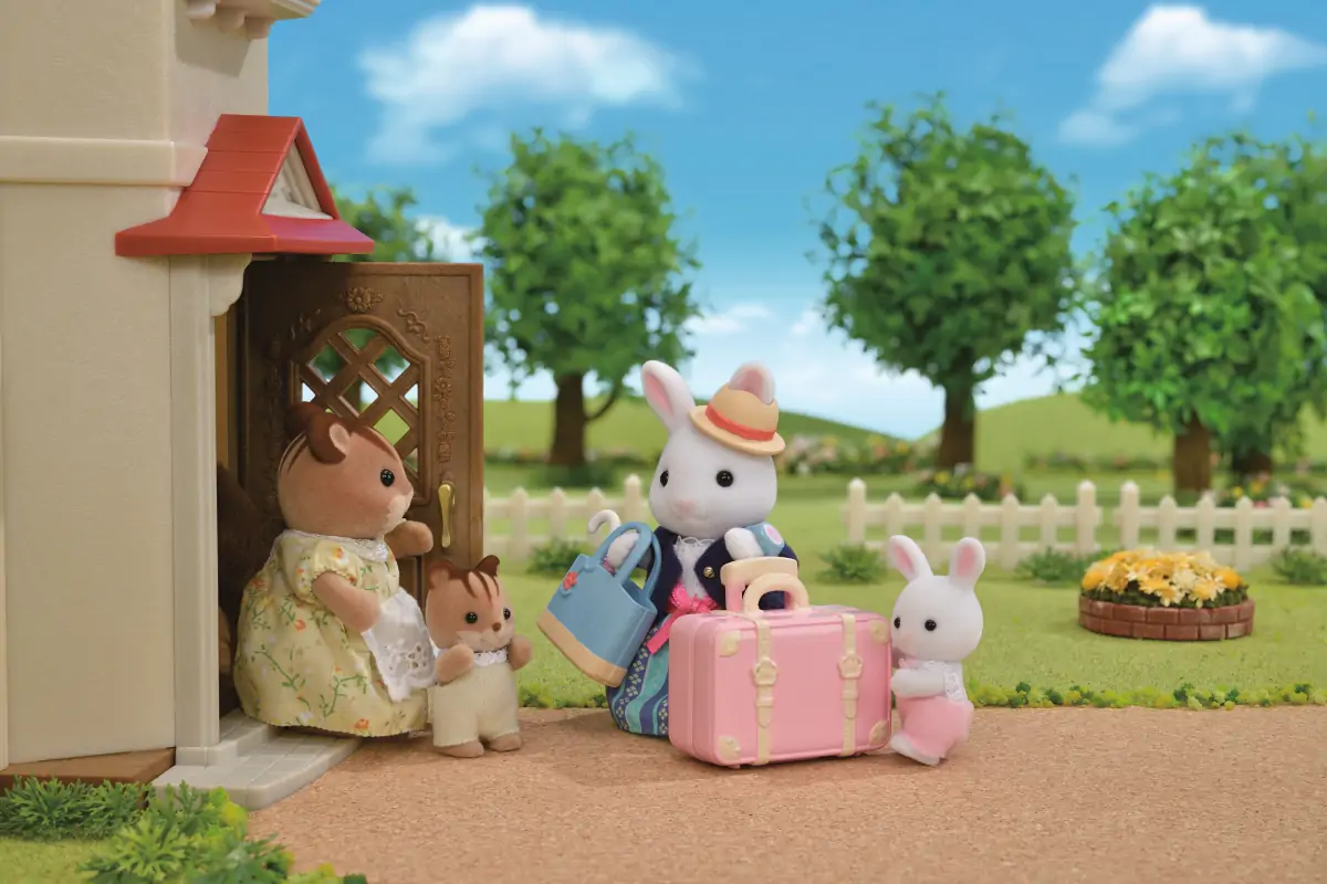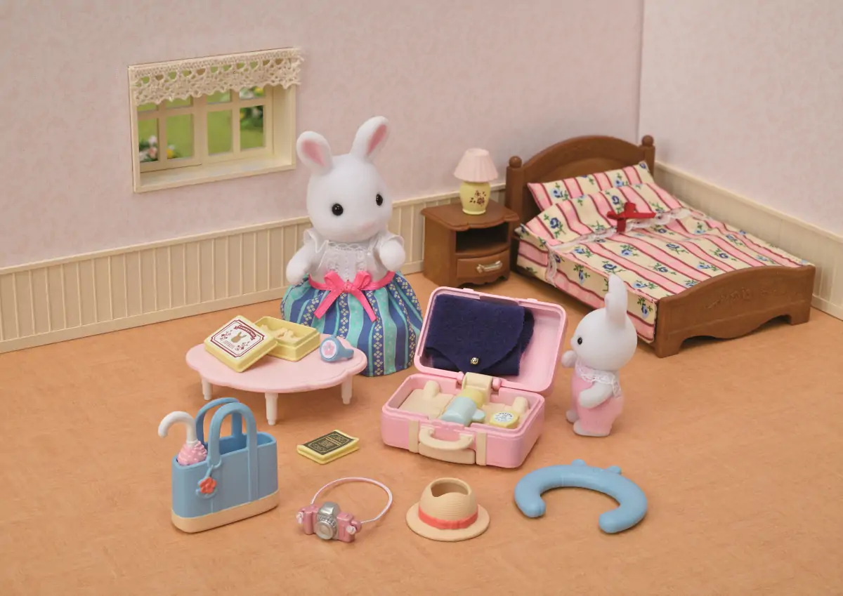 Sylvanian Families Weekendrejse legesættet indeholder snekaninmor Emilia i et eksklusivt outfit plus en kuffert, håndtaske, nakkepude og rejsetilbehør.