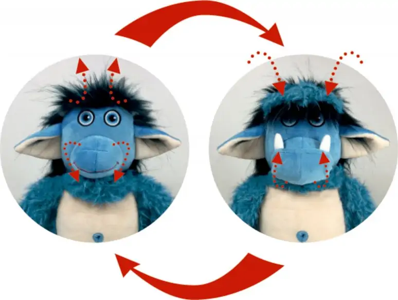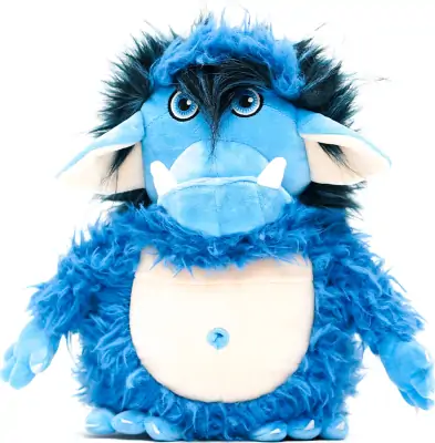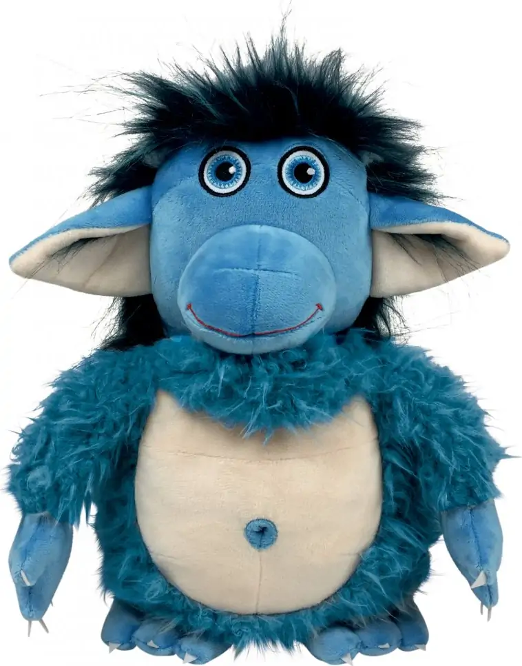 Nu fås Buldretrolden også som den skønneste plysbamse, som kan skifte humør fra sur til glad, når han har fået styr på de vrede følelser igen. Han er cirka 35 cm høj.