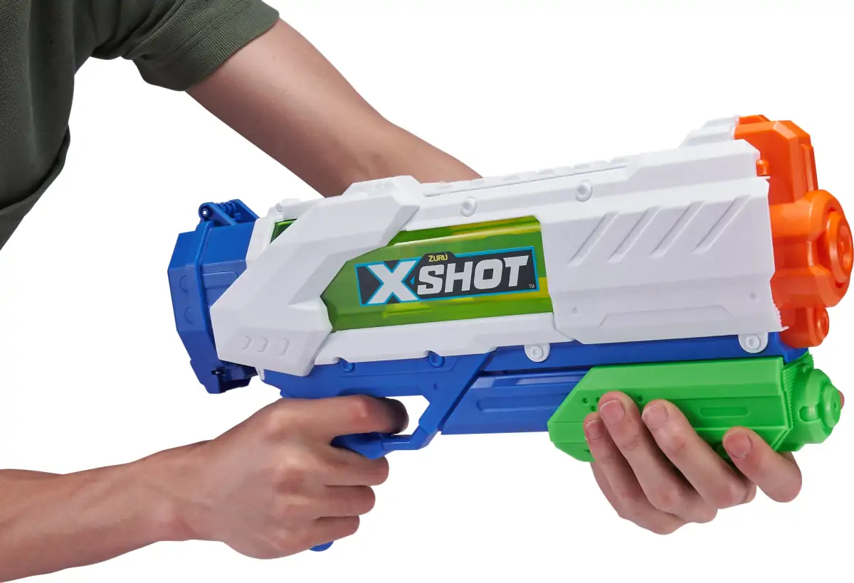 Med X-shot Fast Fill kan du fylde din vandpistol på under 2 sekunder, så du hurtig kan træde ind i kampen igen. Med en kapacitet på 700 ml og en rækkevidde på op til 10 meter kan du hurtigt blive kampens vinder! Er fjenden ved at stikke af, frem med pistolen, fokusér og SKYD!