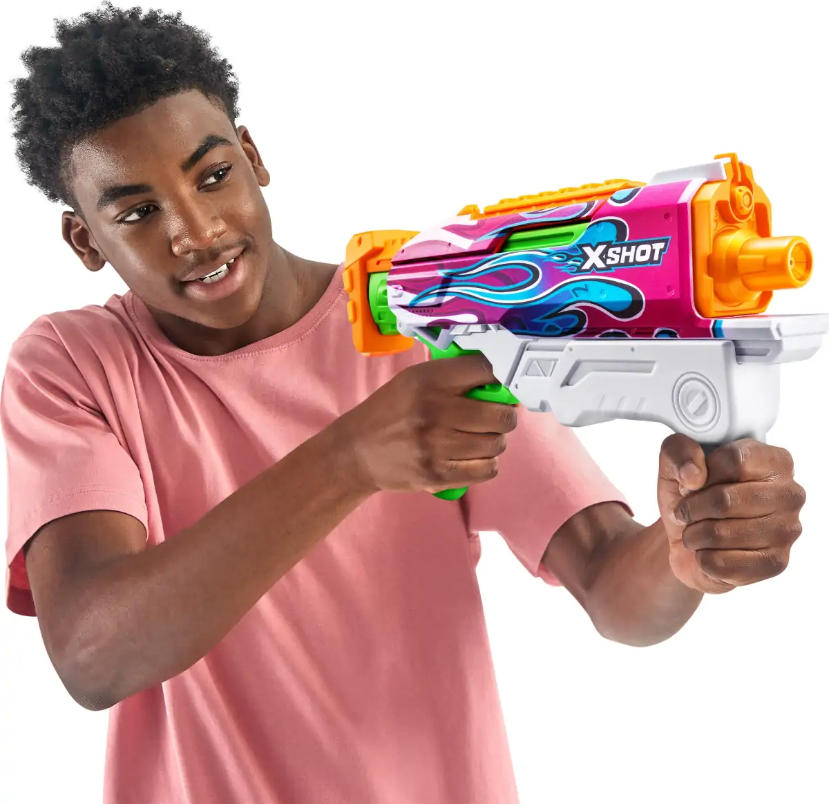 X-shot vandpistolen lader dig genopfylde på bare ét sekund, så du hurtigt kan komme tilbage i aktion langt før dine modstandere! Vandpistolen kan holde 500 ml vand, så du har masser af vand at gøre godt med, hvilket giver dig mere tid til at spille og mindre tid, hvor du skal genopfylde. Du kan skyde vand op til 10 meter væk, så dine modstandere bliver drivvåde selv på lang afstand.